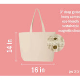 Webbed handles Magnetic Closure Eco-friendly, durable, recyclable.
