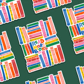 This water and weather resistant sticker features quirky colorful lettering that encourages you to read more books, surrounded by a colorful pattern of illustrated books in various stacks. Dimensions: 2.9" x 3.5"