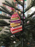 Glass ornament with glittery books in a fabulous stack to brighten up any tree.